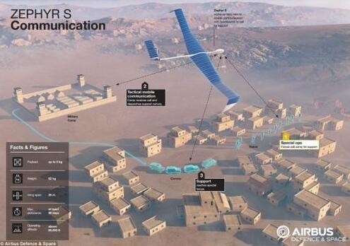 SAS將使用無人機上的攝像頭監控地面活動。Zephyr的天線能為搜尋地球更廣闊區域提供一個通訊平臺。