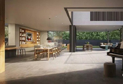 在主樓層,用餐區和生活區與室外露臺區無縫合并,推拉門提供保護,防止左右,全部打開則空間完全開放。