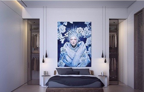另一個房間相對簡單很多,而充滿藍色色調的人像畫給整個房間增添了色彩感。