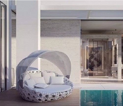 這款別墅仍舊將玻璃墻進行大范圍使用,而室內與室外泳池的連接也最大限度運用了圓柱進行搭配,既節省空間又提高了觀賞性。同樣的,在屋頂仍然利用了太陽能發電系統進行家庭能源供給。