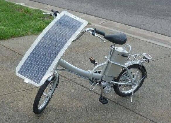 這款太陽能自行車車頭有一塊很大的太陽能板來吸取太陽能,通過太陽能來轉化為電力,輸入到座位下的電池里,可以說這輛自行車的已經適應了任何的天氣了。