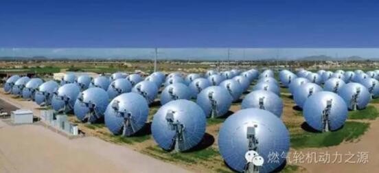 CSP中有一種類型叫parabolicdish,即拋物面蝶式,用斯特林發(fā)動機(jī)驅(qū)動發(fā)電機(jī)發(fā)電。與其他CSP發(fā)電技術(shù)集中用渦輪發(fā)電機(jī)進(jìn)行發(fā)電,而碟式系統(tǒng)則是每個獨(dú)立的聚熱模塊都能就地進(jìn)行熱電轉(zhuǎn)換,具有靈活部署的模塊化特點(diǎn)。單臺斯特林的功率為1-30kW,CSP系統(tǒng)既適合以數(shù)百千瓦的規(guī)模進(jìn)行分布式部署,又有能力構(gòu)建數(shù)百兆瓦的大型電站。斯特林發(fā)動機(jī)的可靠性始終是一大硬傷,微型燃?xì)廨啓C(jī)(MGT)則可以解決這一難題。