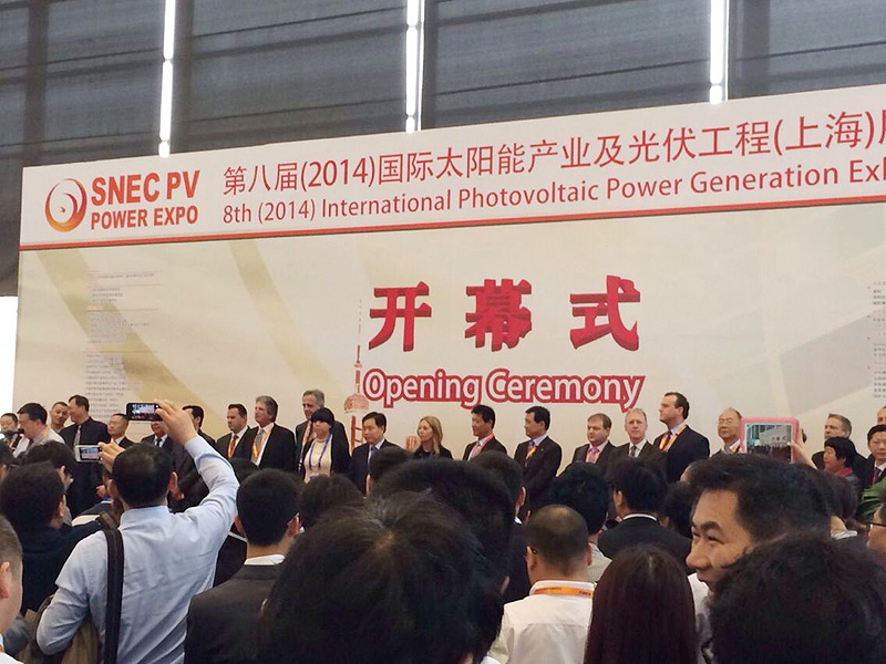 2014520是很多情侶紀念儀式的大好日子,同時今天也是我們碩日上海光伏展的第一天,對于這次亞洲光伏展,公司給予高度重視,不論從展臺設計到現(xiàn)場活動的策劃,領導都是親力親為,給予了很多建設性意見。你們瞧,用心付出終有回報,展會第一天碩日展臺就集聚了很高的人氣,門庭若市,人頭攢動。