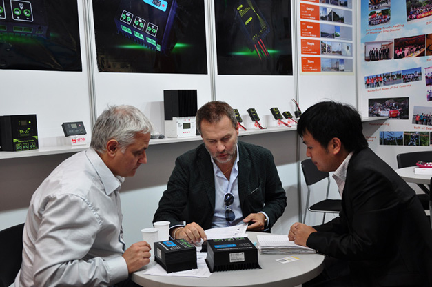 德國(guó)慕尼黑國(guó)際太陽(yáng)能技術(shù)貿(mào)易展覽會(huì)(Intersolar Europe)是規(guī)模大、影響深的太陽(yáng)能專業(yè)展覽交易會(huì),聚集了國(guó)際上所有業(yè)內(nèi)知名企業(yè)。應(yīng)國(guó)際市場(chǎng)需求,2014年6月4日-6月6日SRNE一行4人參加了此次展會(huì),在忙碌的三天展會(huì)中,收獲頗豐,公司文化及產(chǎn)品獲得了國(guó)外客戶的大大認(rèn)可。我們累且非常快樂(lè)著。
