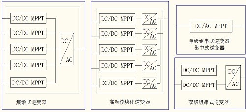 中國(guó)光伏市場(chǎng)的爆發(fā),促進(jìn)了光伏逆變器的發(fā)展,各種技術(shù)層出不窮。目前使用的有集中式逆變器,單級(jí)組串式逆變器,雙級(jí)組串式逆變器,集散式逆變器,高頻模塊化逆變器,MPPT的技術(shù)也是多種多樣。