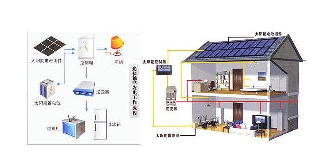 常規的光伏發電系統主要由光伏陣列、充放電控制器、儲能裝備或逆變器(此環節可采用逆控一體機,方便更高效)、負載等組成。光照射到光伏陣列上,光能轉變成電能,光伏陣列的輸出電流由于受環境影響,因此是不穩定的,需要經過轉換器將其轉變成穩定的電流后,才能加載到蓄電池上,對蓄電池充電,蓄電池再對負載供電。如果是并網售電,則不需要蓄電池,而是通過并網逆變器,將直流電流轉換成交流電流,并到電網上進行出售。也就是說,離網型光伏發電系統必須使用到蓄電池儲能,而并網型則不一定需要。